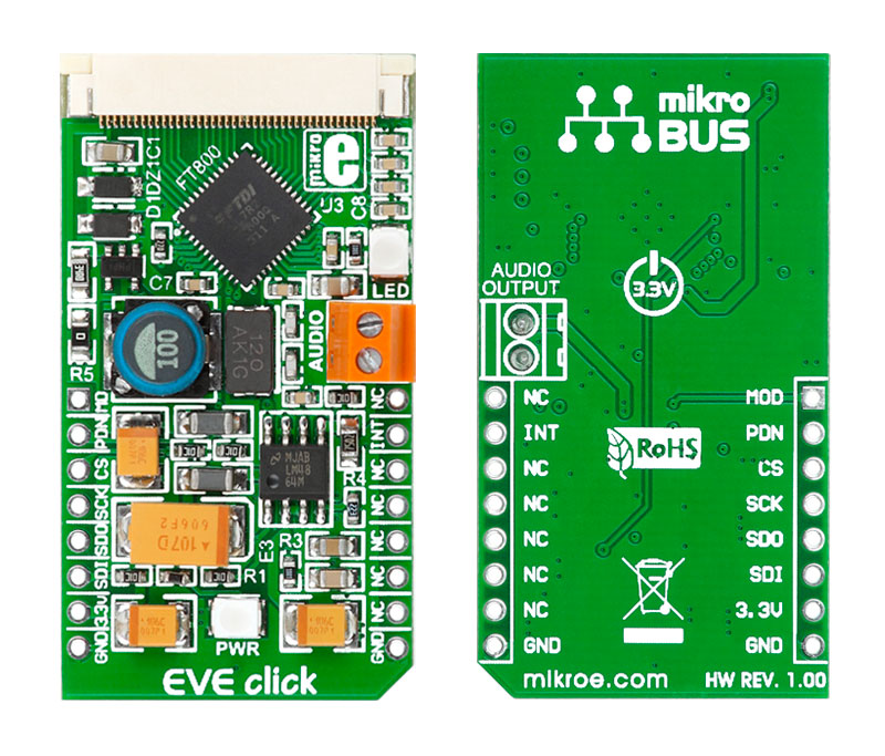 EVE Click™ Display Controller Board w/ FT800Q Graphics Controller